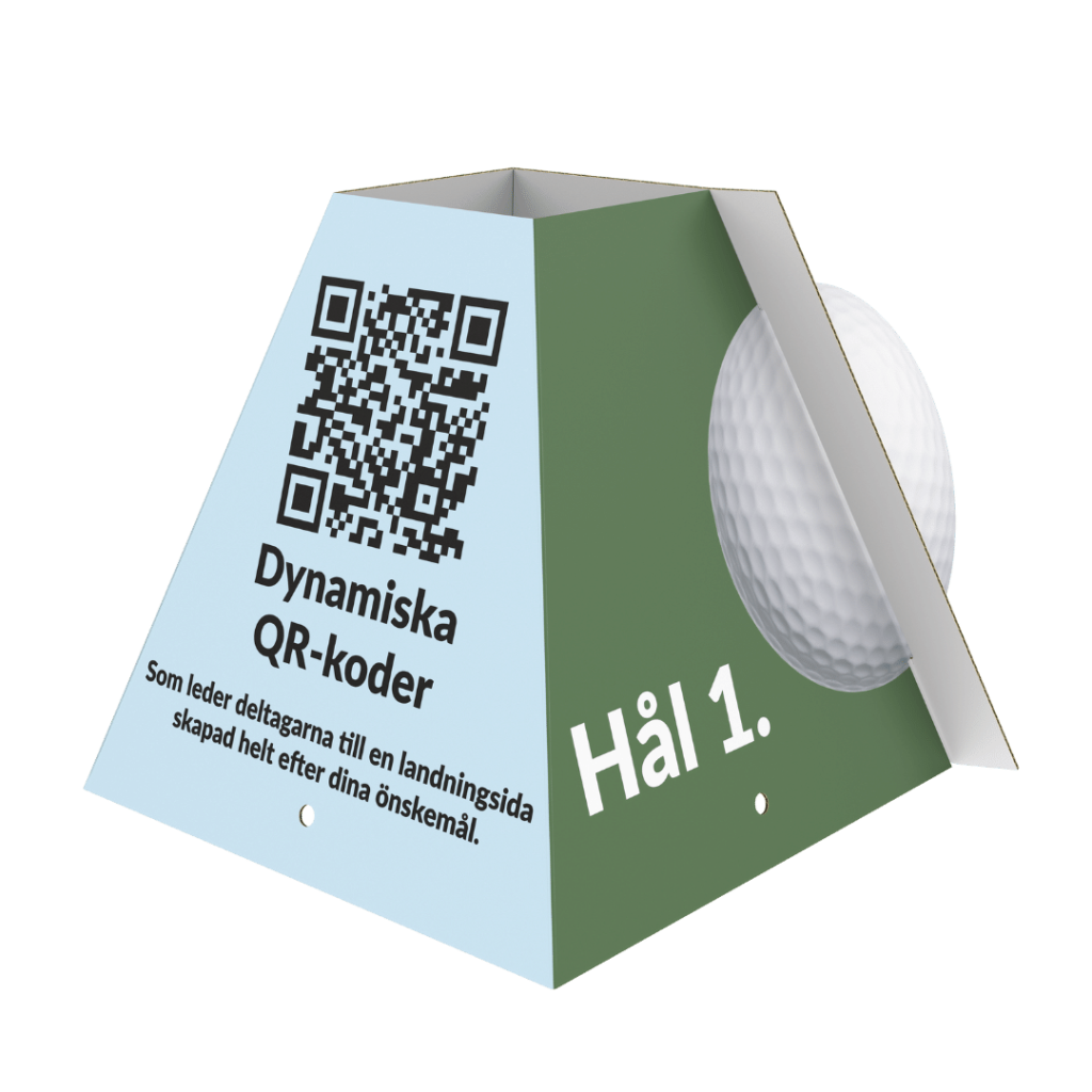 Placeras vid varje Tee och kan designas individuellt med tillhörande QR-kod.