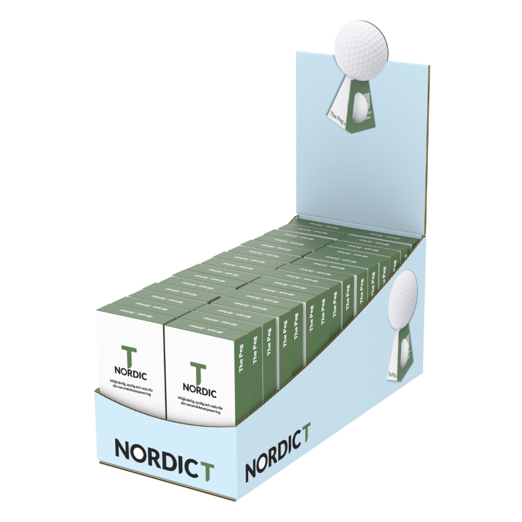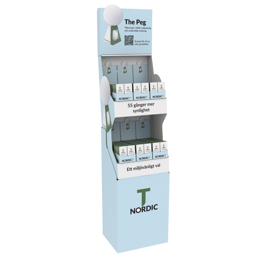 För golfshopar, receptioner eller event kan peggarna på ett prydligt sätt exponeras i denna golvdisplay.